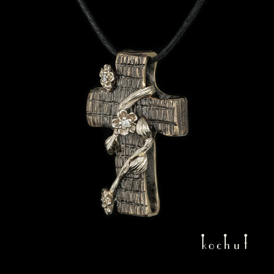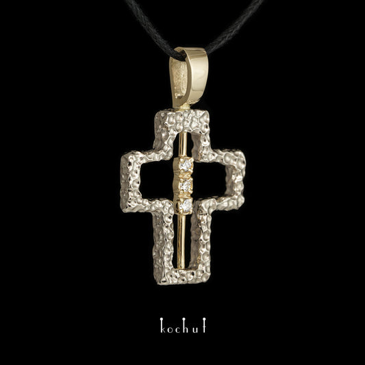 Demut — Kreuz aus oxidiertem Silber und Gelbgold