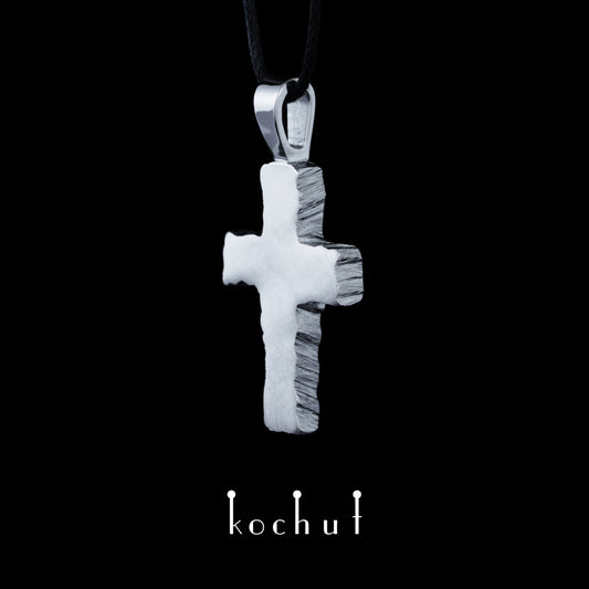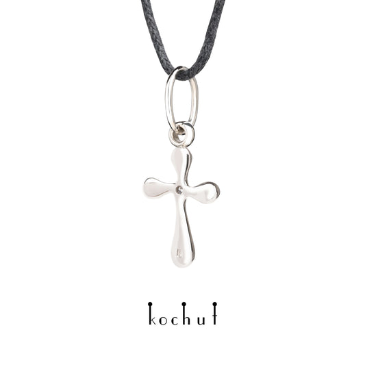 Leib und Seele — silbernes Kreuz mit Weißgoldüberzug, bedeckt mit weißem Rhodium