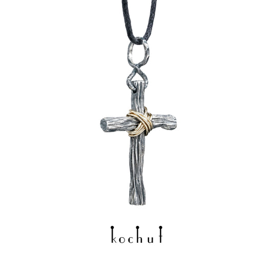Heiliger Feuer — Kreuz aus oxidiertem Silber und Gelbgold