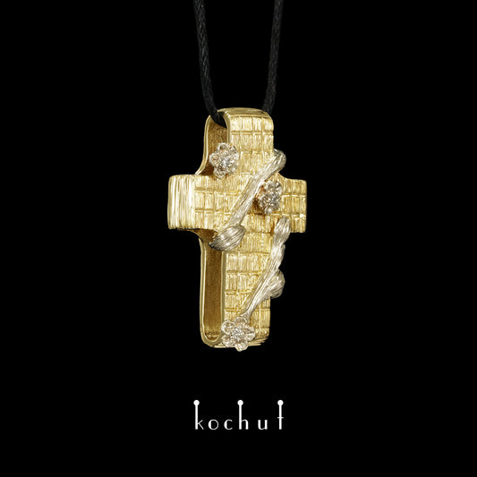 Die Wurzeln des Glaubens — Kreuz aus Weiß- und Gelbgold mit schwarzem Rhodium