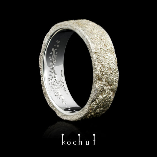 Leib und Seele mit Rinde und Lebensbaum — Ehering aus oxidiertem Silber mit Gelbgold-Oberfläche