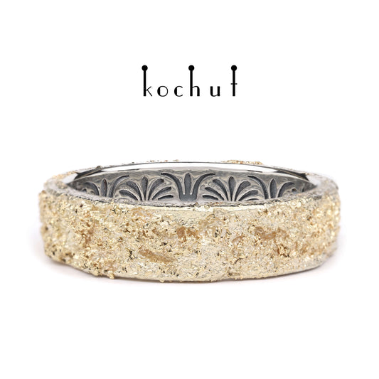 Leib und Seele: zusammenhängendes Ganzes – ganzheitliches Armband aus Silber und gelbem Gold mit Oberflächenbearbeitung