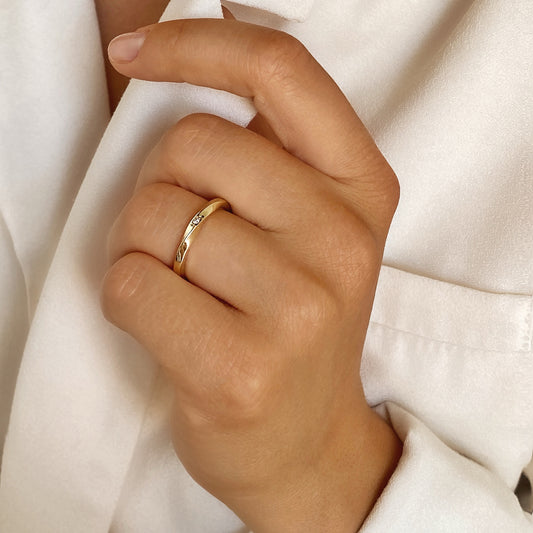 Mobius-Band: verengt — Ehering aus Rotgold mit einem Diamanten
