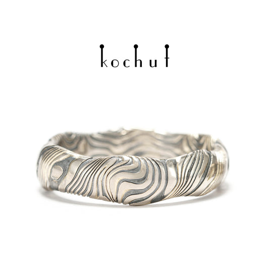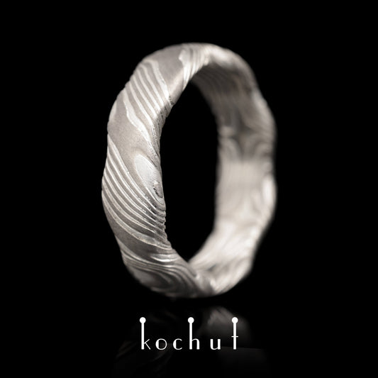 Waves — Mokume-Ring aus Palladium-Gold sowie geätztem und oxidiertem Silber