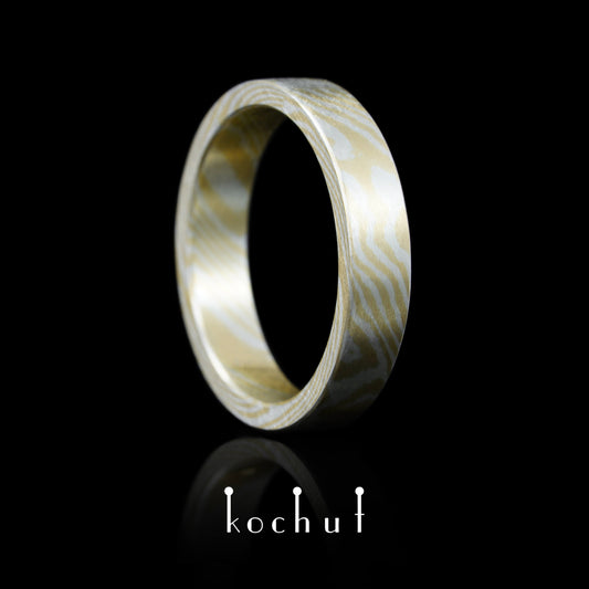 Kanso — Mokume-Ehering aus Silber und Gelbgold