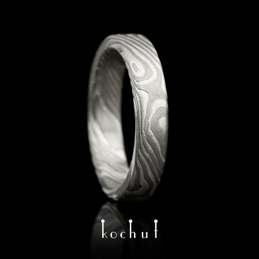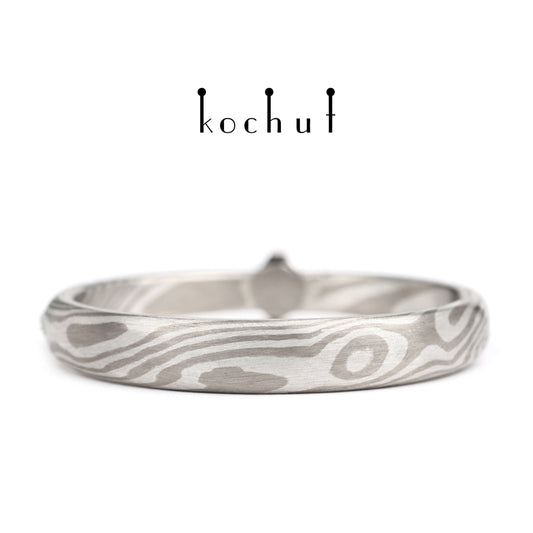 Kanso — Mokume-Ehering aus graviertem Silber und Palladium-Gold