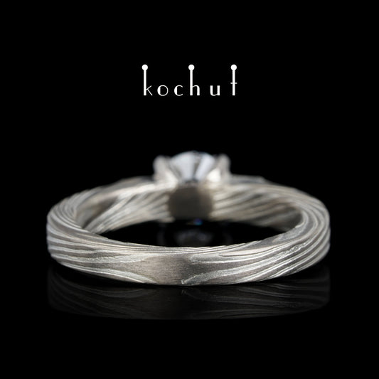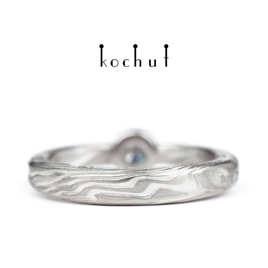 Yuna — Mokume-Verlobungsring aus Palladium-Gold, graviertem Silber mit einem Diamanten