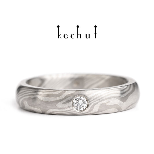En — Ehering aus Palladium-Gold und Silber mit Diamant