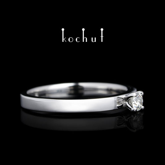 Unschuld — Verlobungsring aus Weißgold mit Diamant, beschichtet mit weißem Rhodium