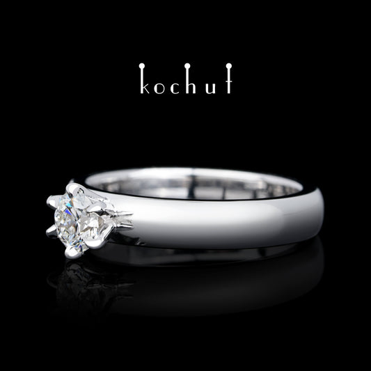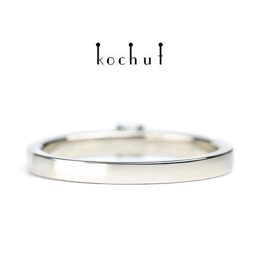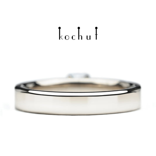 Achse der Liebe — Ehering aus Weißgold mit einem Diamanten