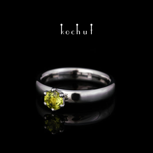 Persephone — Silber-Verlobungsring mit Chrysolith, beschichtet mit weißem Rhodium