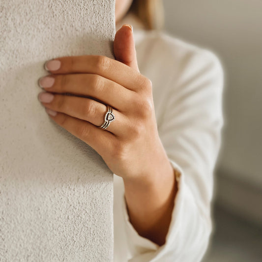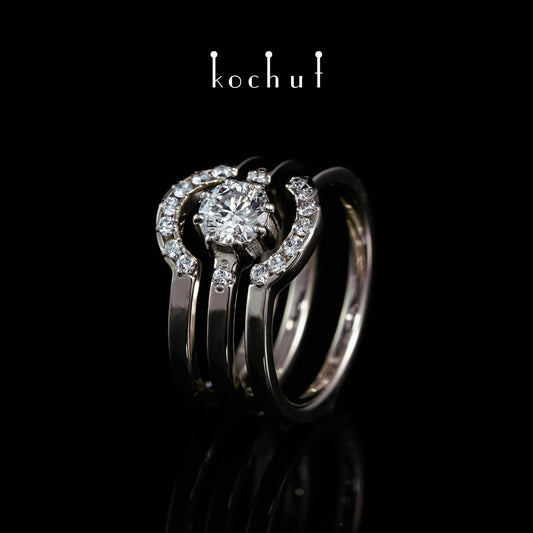 Meridian — dreifingriger Verlobungsring aus Weißgold mit Diamanten