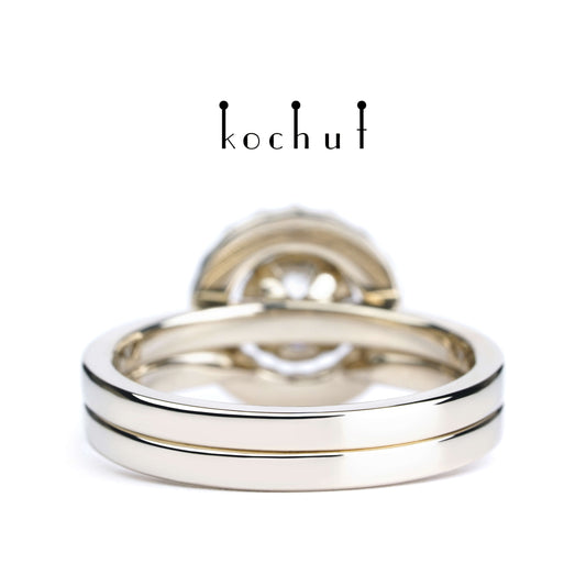 Sanfte Umarmungen — Verlobungsring aus Palladium-Gold mit Diamanten
