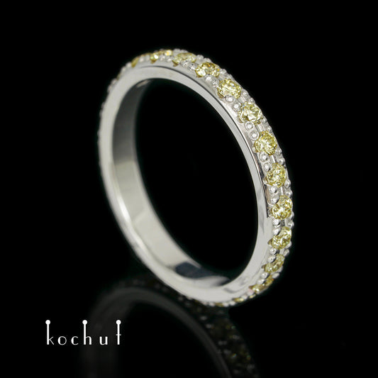 Mein Orbit — ein Verlobungsring aus Weißgold mit gelben Diamanten