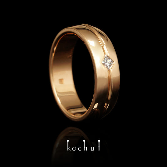 Achse der Liebe — Ehering aus Rotgold mit einem Diamanten