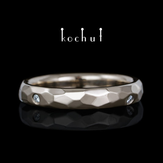 Aristocrats — flach geformter Ehering aus Weißgold mit Diamanten