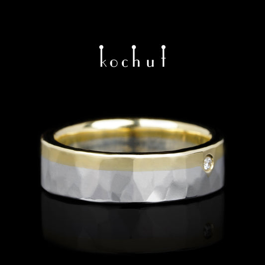 Eisberg der Gefühle — Ehering aus Gelbgold und Silber mit Diamanten