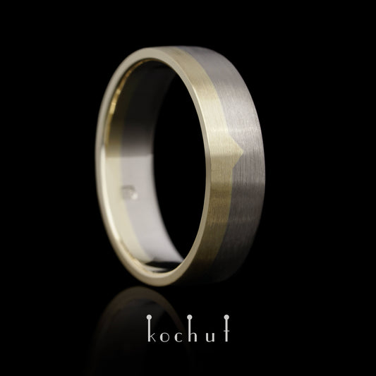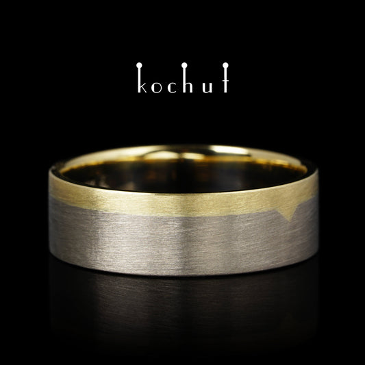 Die letzte Grenze – flach geformter Ehering aus Gelbgold und Palladiumgold