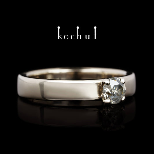 Classic — Verlobungsring aus Palladium 18K Gold mit einem grauen Diamanten