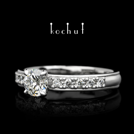Großartigkeit — Verlobungsring aus Weißgold mit Diamanten, platiert mit weißem Rhodium