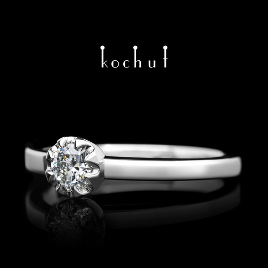 Satellit — Platin-Verlobungsring mit einem Diamanten
