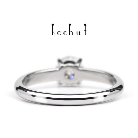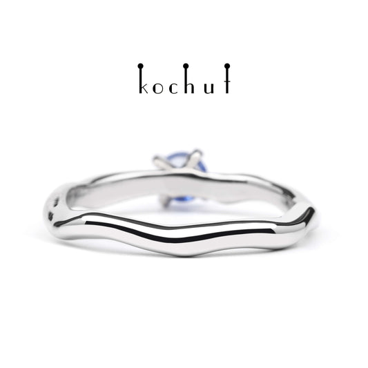 Sanfte Umarmungen — Verlobungsring aus Weißgold mit Kornblumen-Saphir, überzogen mit weißem Rhodium