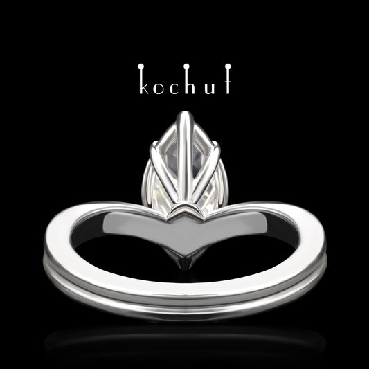 Arwen — Verlobungsring aus Weißgold mit einem Marquise-Schliff-Diamanten, plattiert mit weißem Rhodium