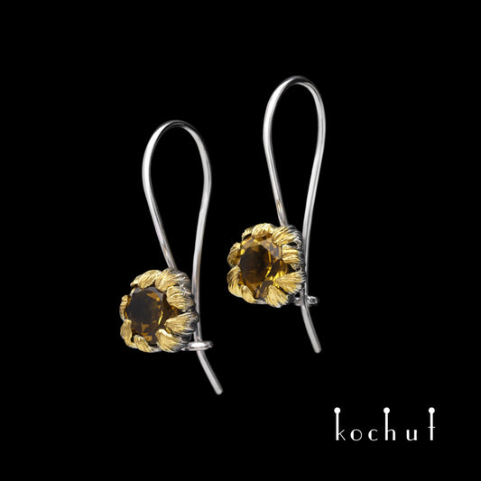 Pfingstrosen — Ohrringe aus oxidiertem Silber mit Citrinen und Vergoldung