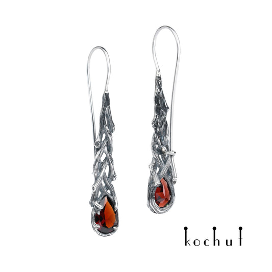 Galadriel — Ohrringe aus oxidiertem Silber mit Granaten
