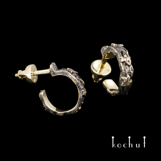Morning Glory — Ohrringe aus Gelbgold, überzogen mit schwarzem Rhodium