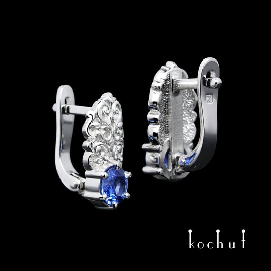 Duchess — Ohrringe aus Weißgold mit Kornblumen-Saphiren und beschichtet mit weißem Rhodium