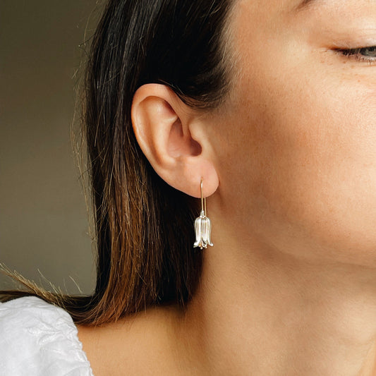 Glockenblumen — Ohrringe aus Silber und Gelbgold