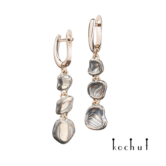 Kalahari — Mokume-Ohrringe aus graviertem und oxidiertem Silber sowie Rotgold