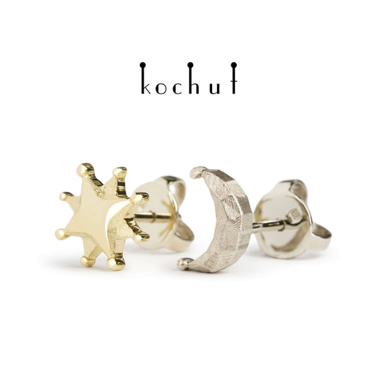 Sonne und Mond — Ohrringe aus Weiß- und Gelbgold
