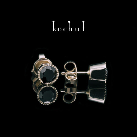 Thiamin — Ohrstecker aus Weißgold mit schwarzen Spinellen
