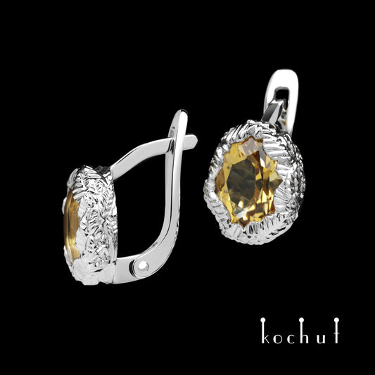 Die Quelle des Lebens – Ohrringe aus Weißgold mit Citrinen, beschichtet mit Weißrhodium