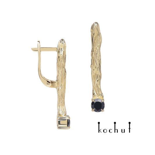 Zweige — Ohrringe aus Gelbgold mit schwarzem Spinell