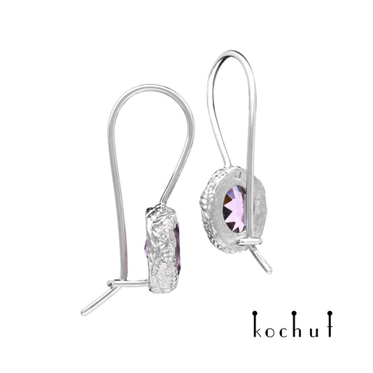 Die Quelle des Lebens — Ohrringe aus Weißgold mit Amethyst, überzogen mit weißem Rhodium