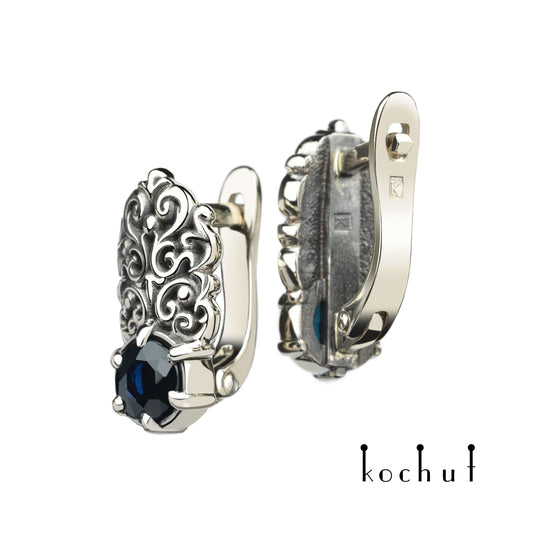 Duchess — Ohrringe aus Weißgold mit Saphir, überzogen mit schwarzem Rhodium