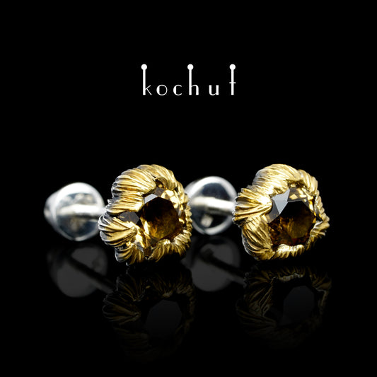 Pfingstrosen — Ohrringe aus oxidiertem Silber mit Citrin und Vergoldung