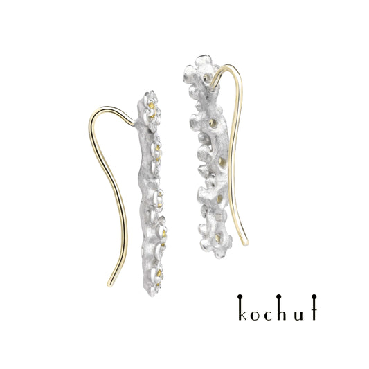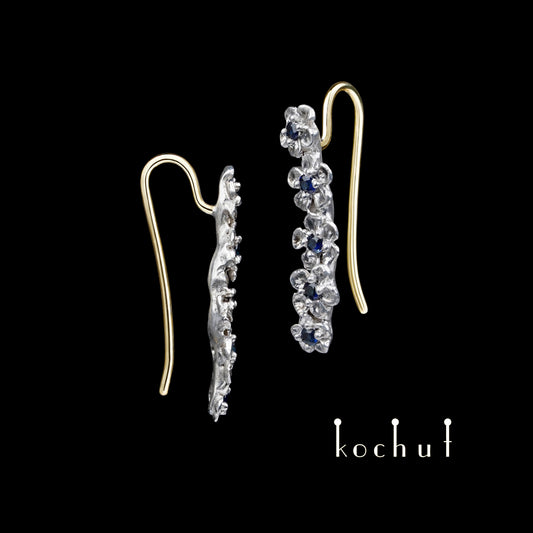 Blumenkrone — Manschetten-Ohrringe aus Silber und Gelbgold mit Saphiren, beschichtet mit Weißgold