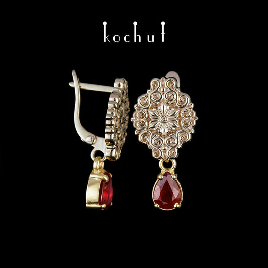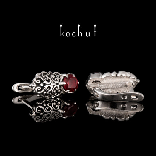 Duchess — Ohrringe aus oxidiertem Silber mit Rubinen