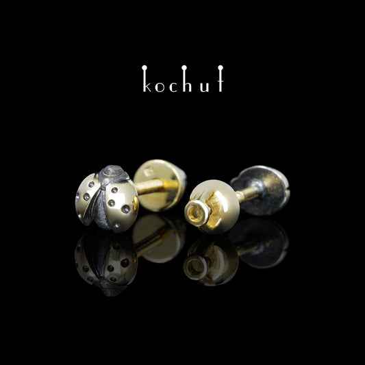 Marienkäfer — Ohrstecker aus Gelbgold, überzogen mit schwarzem Rhodium