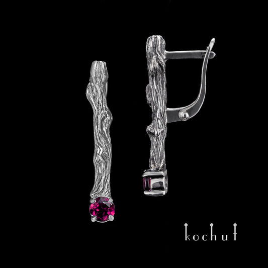 Kleine Zweige — Ohrringe aus oxidiertem Silber mit Granaten