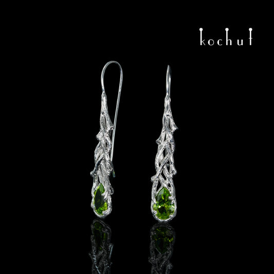 Galadriel — silberne Ohrringe mit Chrysolithen, plattiert mit weißem Rhodium