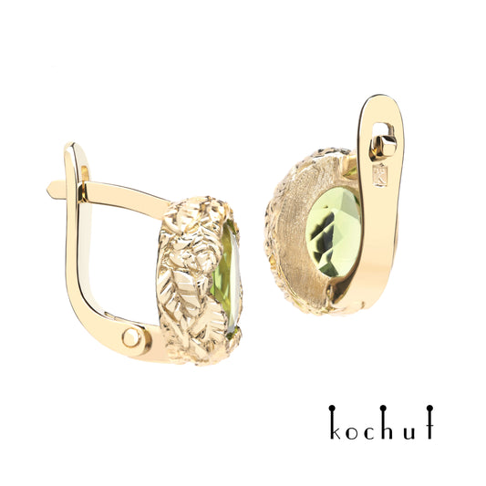 Quelle des Lebens — Ohrringe aus Gelbgold mit Chrysolithen