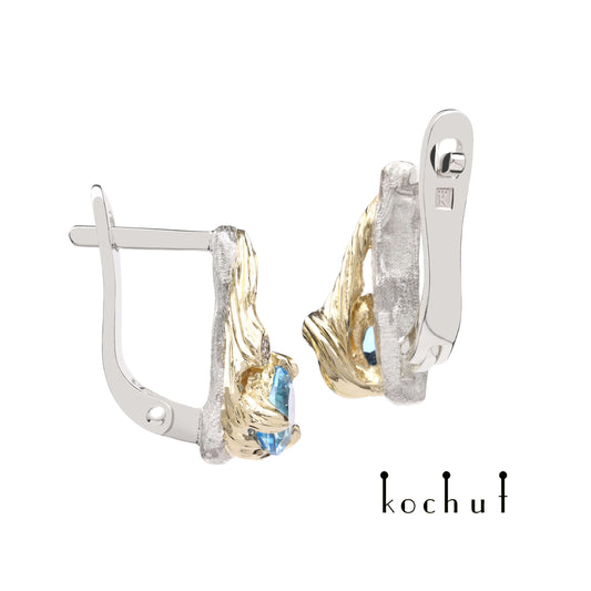 Atlantis — Ohrringe aus Silber und Gelbgold mit Topasen und Diamanten