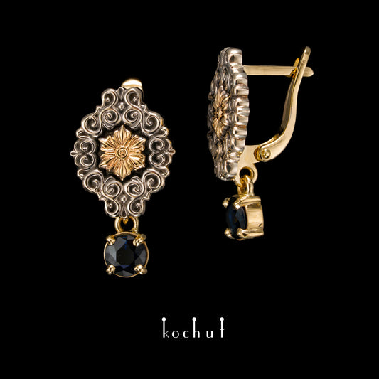 Notre-Dame — Ohrringe aus Weiß- und Gelbgold mit Saphiren, bedeckt mit schwarzem Rhodium