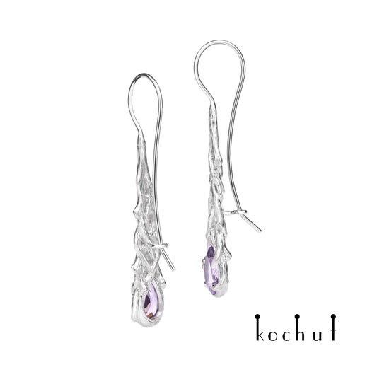 Galadriel — Ohrringe aus Weißgold mit Amethysten, überzogen mit weißem Rhodium