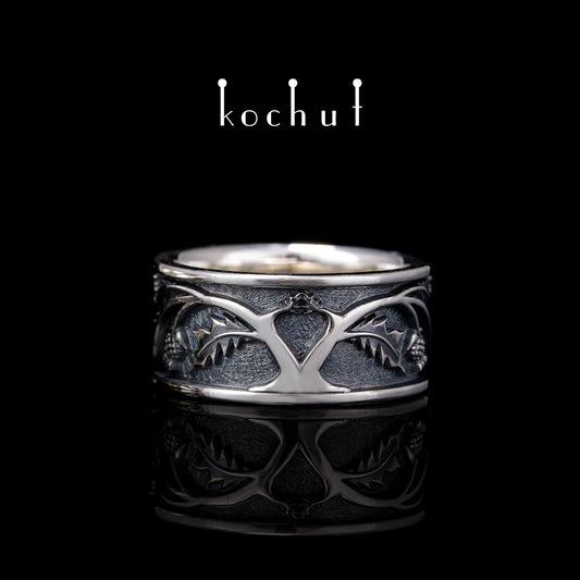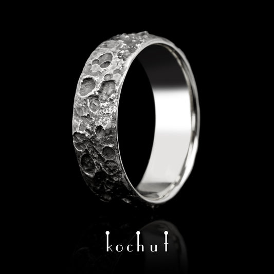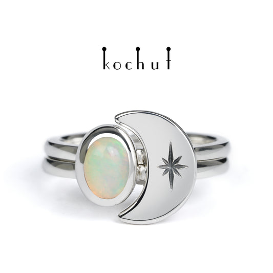 Zum Mond und zurück — Ring aus oxidiertem Silber mit Opal